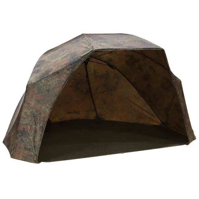 A traditional style 60" brolly manufactured using our premium OPTI-CAM H-D camo 210D 10,000mm HH waterproof fabric. Featuring several design updates, bringing it bang up to date to meet the needs of the modern-day carp angler! The fibreglass frame is both lightweight and extremely rigid. The enlarged side wings that wrap around to the front of the brolly, provide extra protection for you and your kit. The addition of a quick set up central pole allows you to have the brolly up and pegged down within a minute. Once erected the central pole can be unscrewed and stored until pack-down. Other features include two 26” quick connect storm poles and four storm pole adaptors. Also included is a Tuff-lite™ removable groundsheet, oversized carry bag and a set of heavy-duty T-pegs. (Universal front panel is available as a separate item).