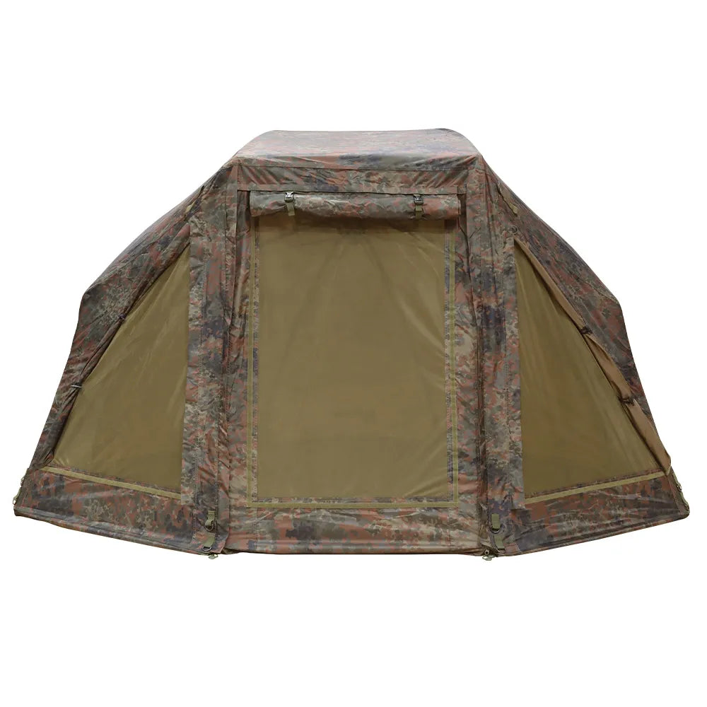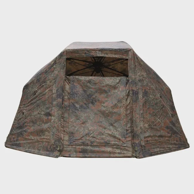 A universal front panel made from our premium OPTI-CAM HD camo fabric that will fit most 60" brolly systems on the market. The elasticated front is extremely quick and easy to attach. Featuring multiple height pegging points for quick setup when your brolly is positioned either low or high. It features a multi-functional door system and large, side mozzi vents, which make it easy to convert to an effective full mozzi mesh front. Compatible with the OPTI-CAM 60” Oval Brolly and perfect for use in both summer and winter.
