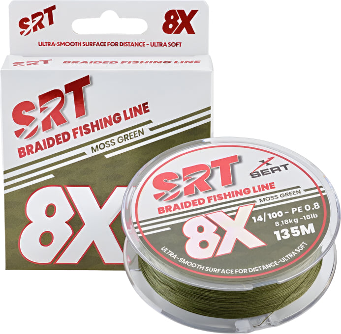 Sert Tresse 8x Srt Moss Moss Green Braided Line 135m 8 strands Ideal spinning line Ultra abrasion resistant Low elasticity Sert Tresse 8x SRT Moss Moss Green braided line is a high quality eight strand braided line with special properties. The ideal spinning line functions as a line, specially designed to meet the needs of spinning fishing. The greenish-mossy colour shade is not only aesthetically attractive, but also naturally blends into the environment, thus increasing the chances of catches. This braided line is highly abrasion resistant, ensuring long life when used on the water. It has low elasticity. Together, these properties make the Sert Tresse 8x SRT braided line the optimal choice for those looking for a high-performance and durable braided line for spin fishing.