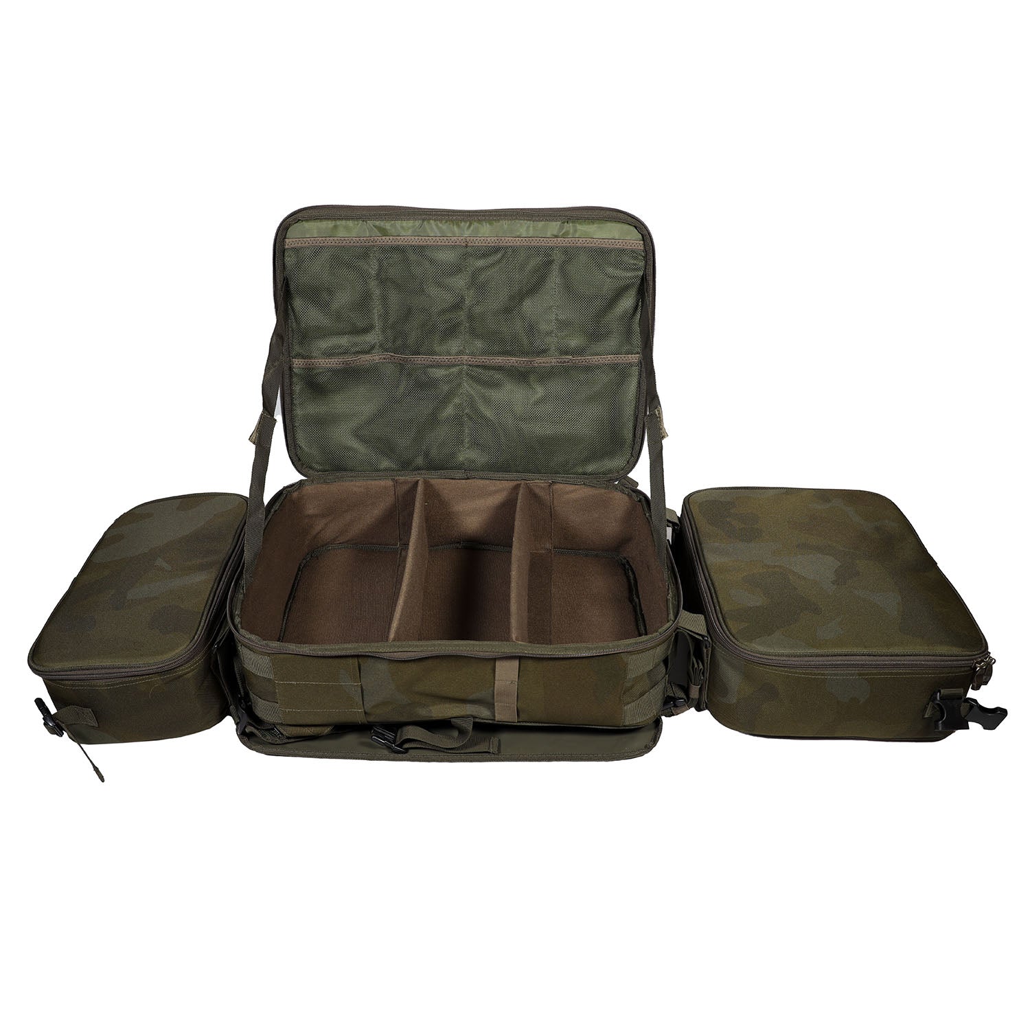 Designed to house smaller accessory pouches and essential items of terminal tackle and larger kit can also be strapped to the sides. Perfect for stalking sessions or for those short sessions where mobility is the key.