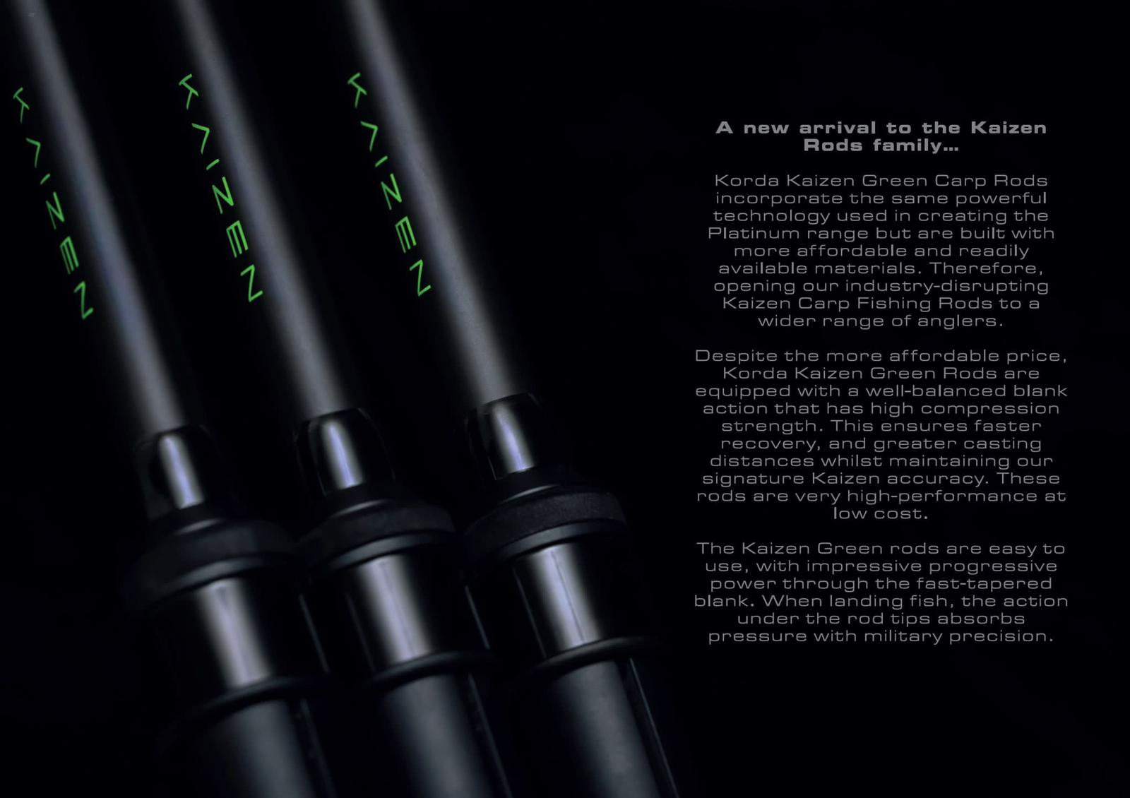 Following on from the hugely successful launch of our first rods under the Kaizen banner, we’ve followed that up with a more affordable, yet still high performance, range called Kaizen Green.The Kaizen Green sits below the flagship Kaizen Platinum rods, but still shares many of the same attributes and design features which set those rods apart, but at a much more affordable price