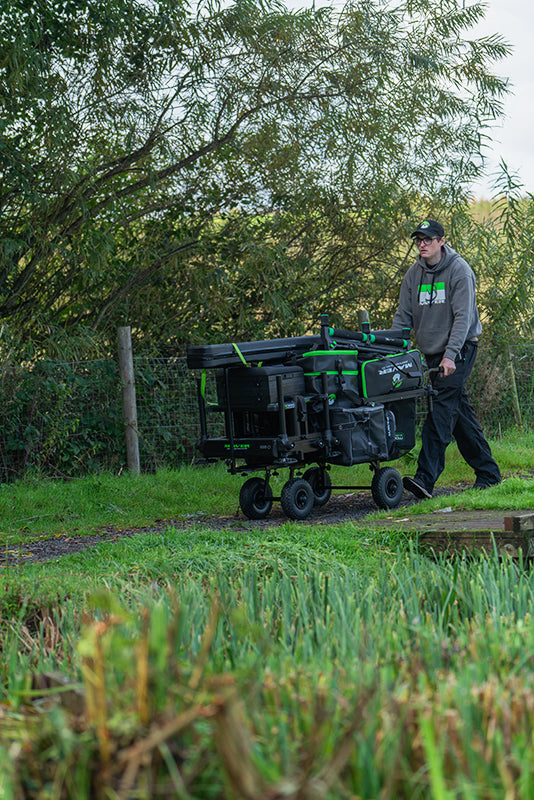 Featuring a super strong, fully welded steel frame and a wide track four-wheel design, you can be sure the Trans-porta barrow is more than up to the job of transporting tackle to and from your peg. Double braced carry handles off additional strength and durability, whilst the massive carry capacity zip-up carry bag will accommodate everything but the kitchen sink!