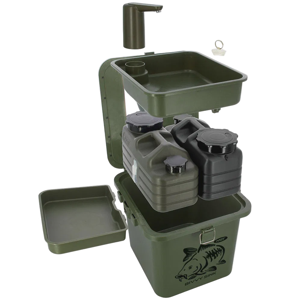 Designed for the modern angler and camper, the NGT Bivvy Sink is a compact and practical all-in-one washing station, perfect for keeping clean and organised whilst outdoors. Whether you're on a fishing trip or a weekend away in the wild, this bivvy sink brings home comforts to the bank.