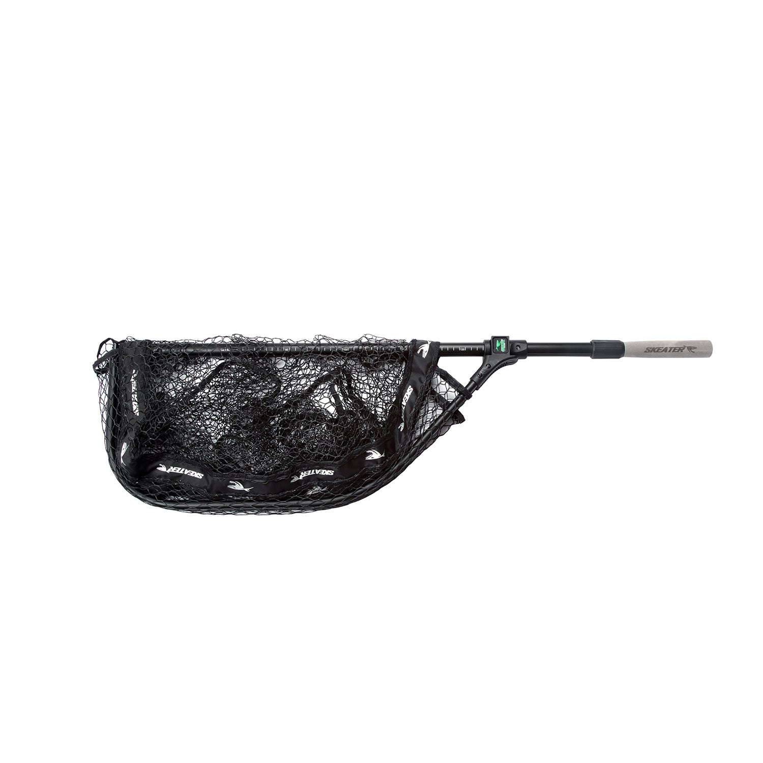 The Skeater Folding Telescopic Preda-Net 64-54cm is a compact, one-handed folding landing net with a fish-friendly rubber-coated mesh, designed for mobile predator anglers seeking quick, efficient netting in tight swims, urban spots, or from small boats—offering durability, grip, and easy storage without compromise.