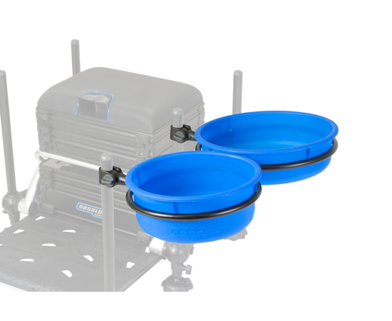 A rigid plastic groundbait bowl and angled fixing hoop for attaching directly to seatbox or platform legs. Groundbait can be mixed in the bowl prior to fishing and then attached to your seatbox leg for use. SnapLok for ease of transport and assembly.