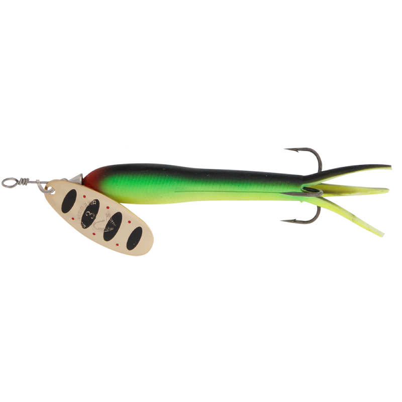 The Flying Eel spinners are available in 5 quality colours and in 2 weights. Rigged with #4 treble hooks, 1 per pack