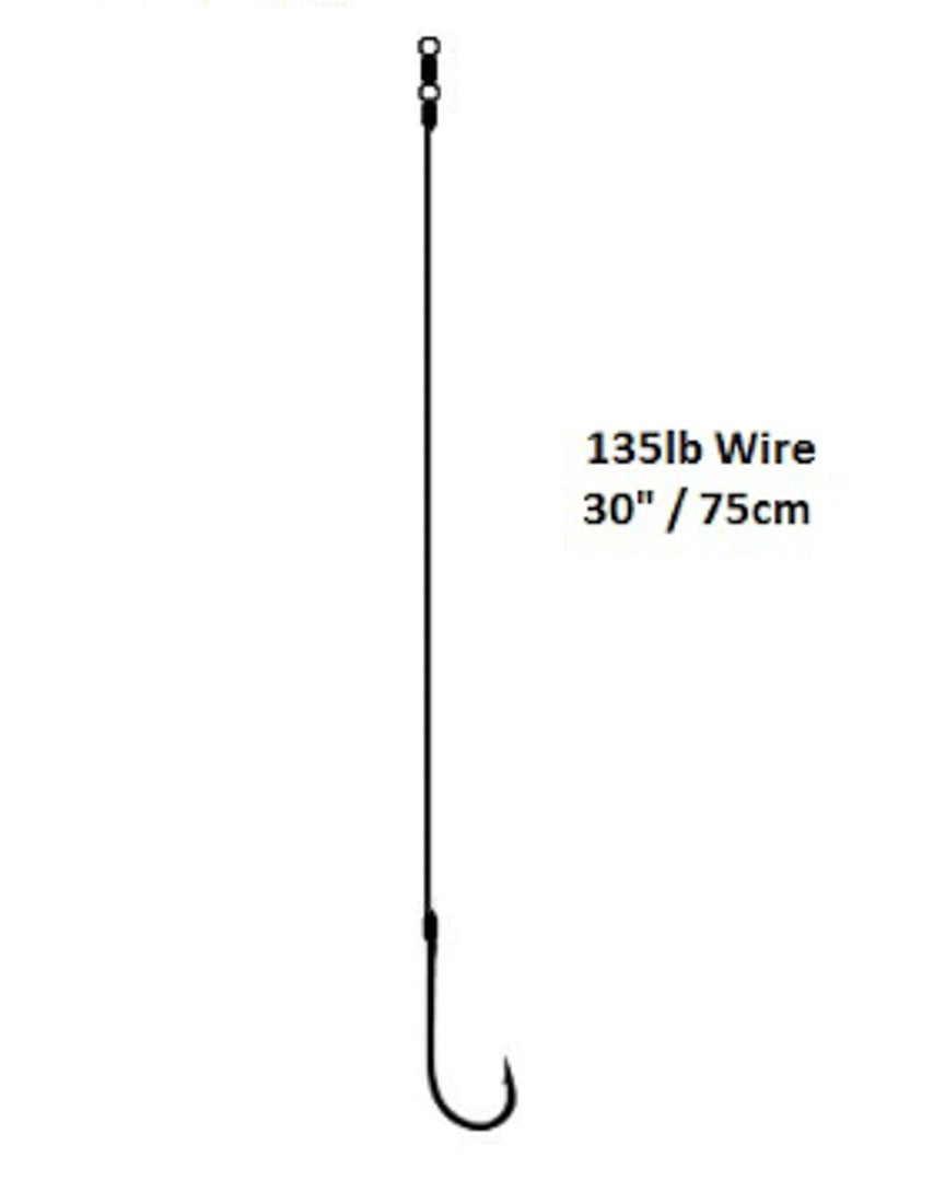 A Cox & Rawle Meat Hook crimped on a 135lb steel wire, matched to a robust crane swivel. A strong well balanced trace for large conger.