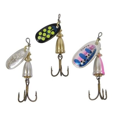 Vibrax Truite spinning lure kit, comes with three lures providing a good selection for targeting trout or perch.