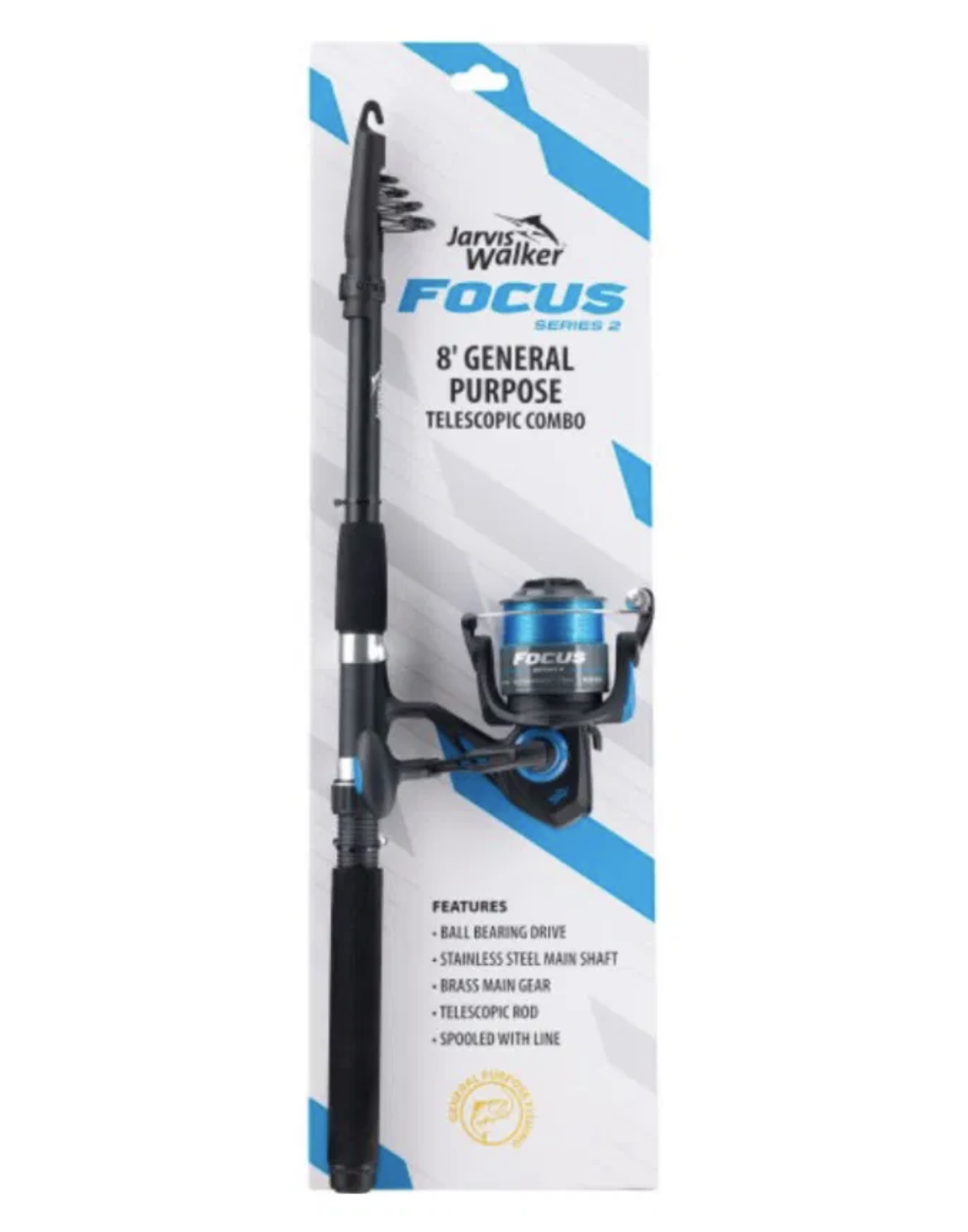 The Jarvis Walker Focus Telescopic Combos are designed to make fishing possible in locations and situations where carrying a standard fishing outfit is difficult. We’ve all experienced situations where owning a compact fishing outfit would have meant the difference between fishing and not fishing. And let’s face it – we’d all rather be fishing! The Jarvis Walker Focus Telescopic Combos are available in three versatile sizes to ensure that most fishing situations are covered. All of the combos include a ball bearing reel with a stainless steel main shaft and brass pinion gear, and they come pre-spooled with line.