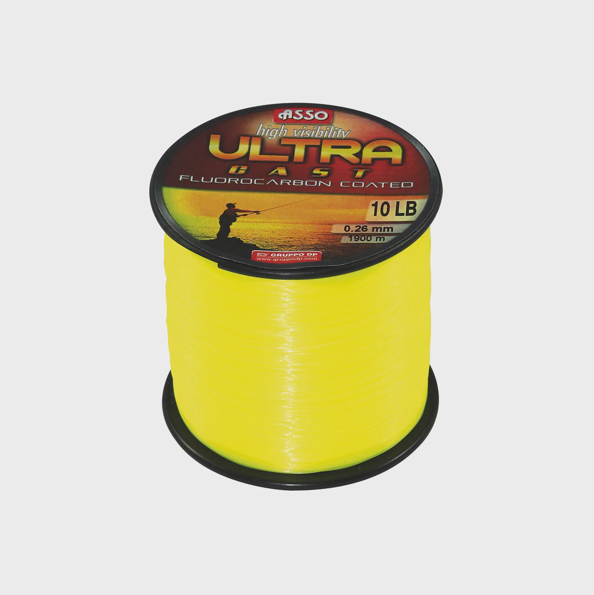 Our strongest premium mainline ASSO's Ultra Cast 4OZ, fluorocarbon coated and used by top anglers. Newly expanded colour range for high visibility. Perfect for dirty water and night fishing all around the UK.