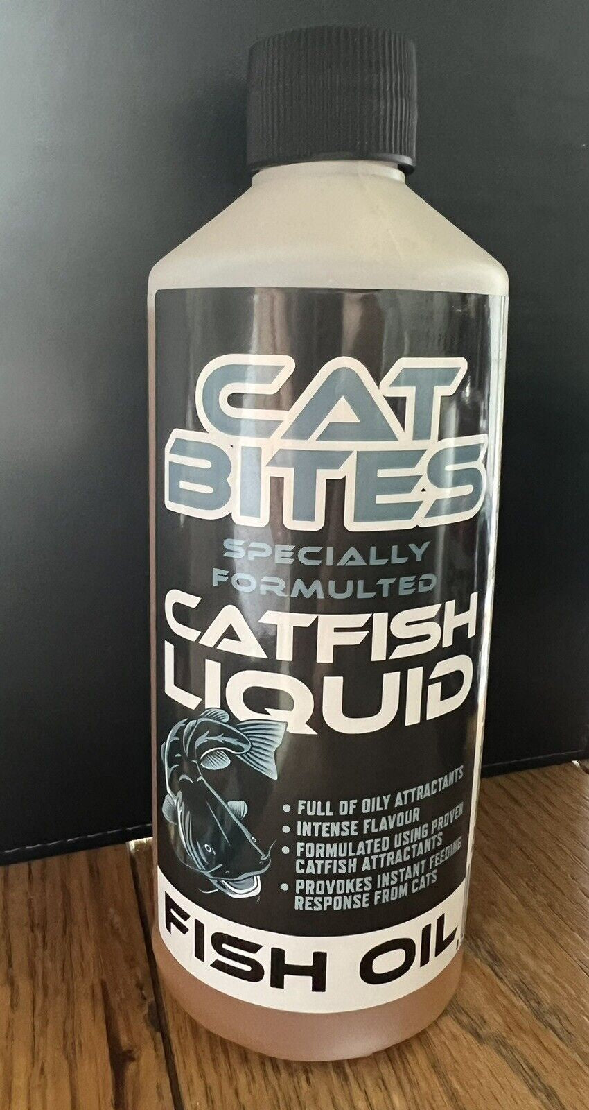 500ml BOTTLE OF BAIT TECH CAT BITES FISH OIL ATTRACTANT , A BLEND OF PUNGENT FISHY FLAVOURS CREATES A LIQUID THAT IS NOT ONLY ATTRACTIVE IT CREATES A IRRESISTIBLE CLOUD TOO . FULL OF OILY ATTRACTANTS , LEAKS OFF INTENSE FLAVOUR. FORMULATED USING PROVEN CATFISH ATTRACTANTS PROVOKES INSTANT FEEDING RESPONSE FROM CATS