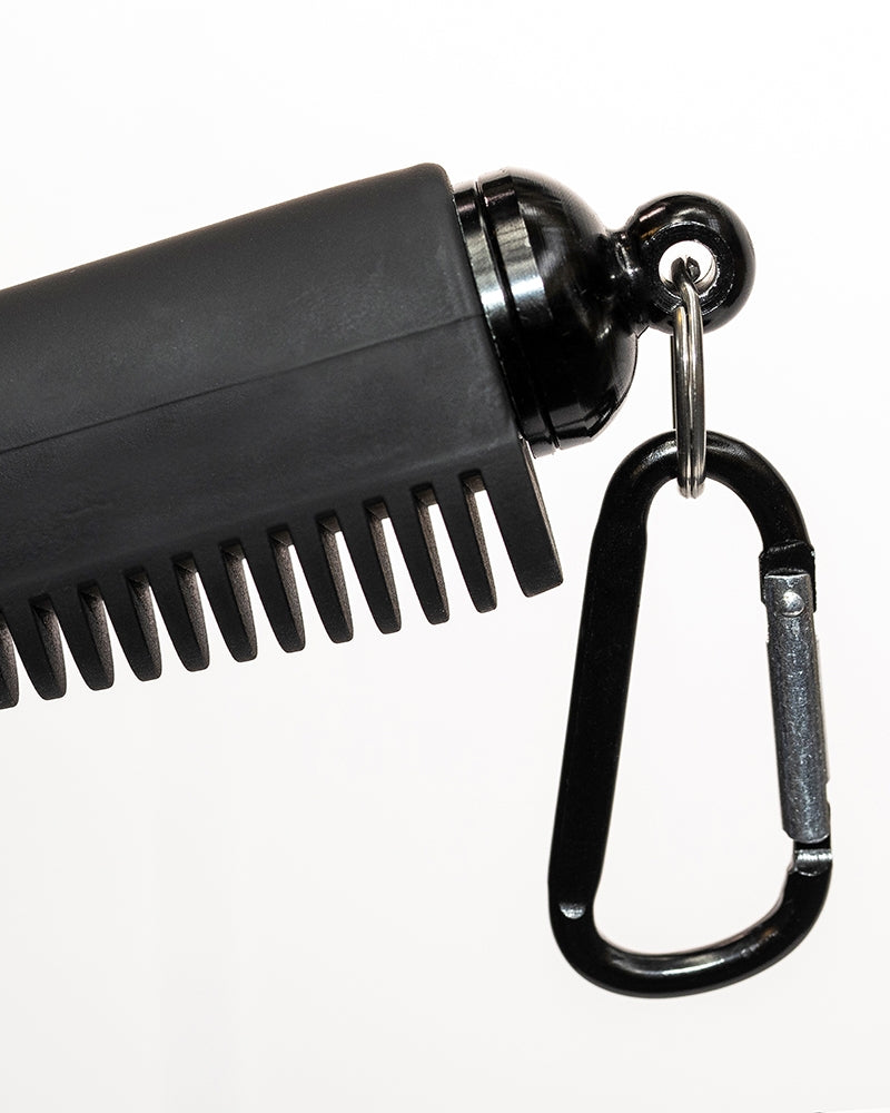 For easy access and carrying, the handle has a strong magnetic attachment with a caribiner clip. This lets you hook it on where it suits, allowing grabbing and easy relocation.