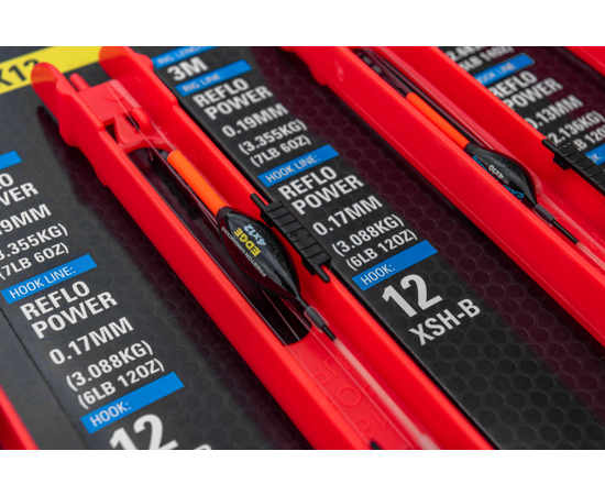 The floats feature the new Dura side eye which makes them far stronger than any float with a standard side eye, without altering the balance. Reflo Power is used for all main lines and hooklengths while our popular XSH-B hooks are the perfect all round hook that can be used for a wide variety of baits. Stotz are used on all of the rigs in a shotting pattern to suit the intended style of fishing.