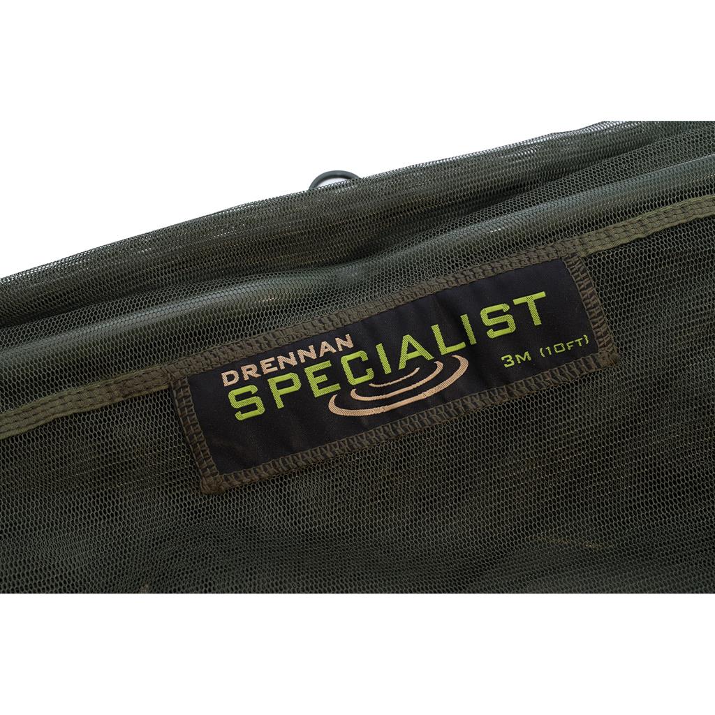 The olive green Specialist keepnets at 2 metres and 3 metres are produced in a hook resistant soft micromesh with super soft carp sacking base making them carp fishery approved.