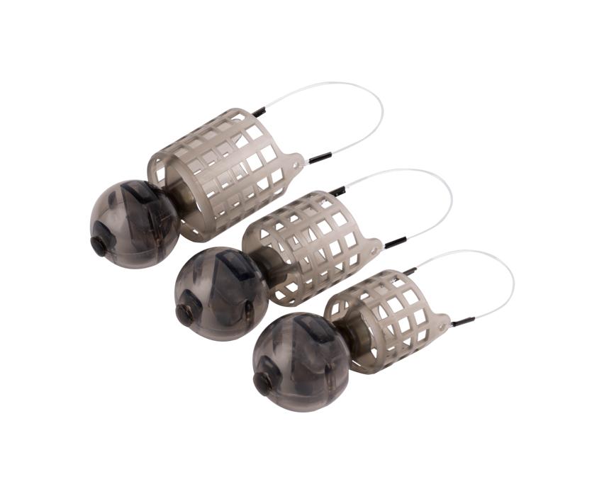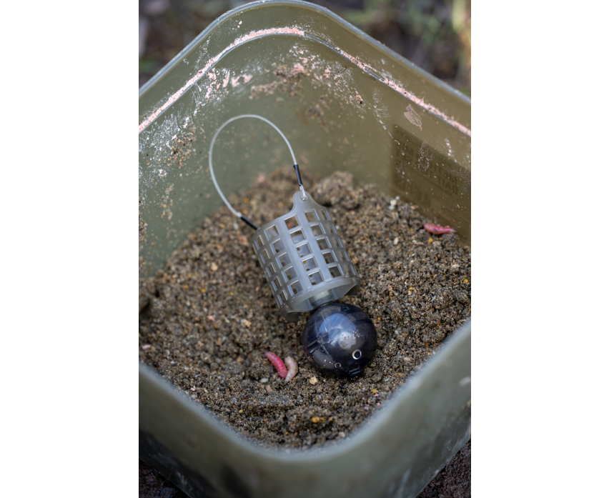 12.5g. With this clever slow sinking feeder you can control the cages sinking speed to catch fish near the surface or in mid water. This is not feasible with conventional cage feeders. The design allows you to catch fish regardless of the depth they are swimming. This method is extremely effective for modern carp fishing at commercial fisheries. A floating device attached to the bottom of the cage replaces the lead weight. It features a small opening closed by a plug, by which you can balance the body with shot so that it will sink slowly or quickly. The cage floats if no lead is added. Sizes: Small 21mm x 25mm, Medium 24mm x 28mm, Large 30mm x 32mm.