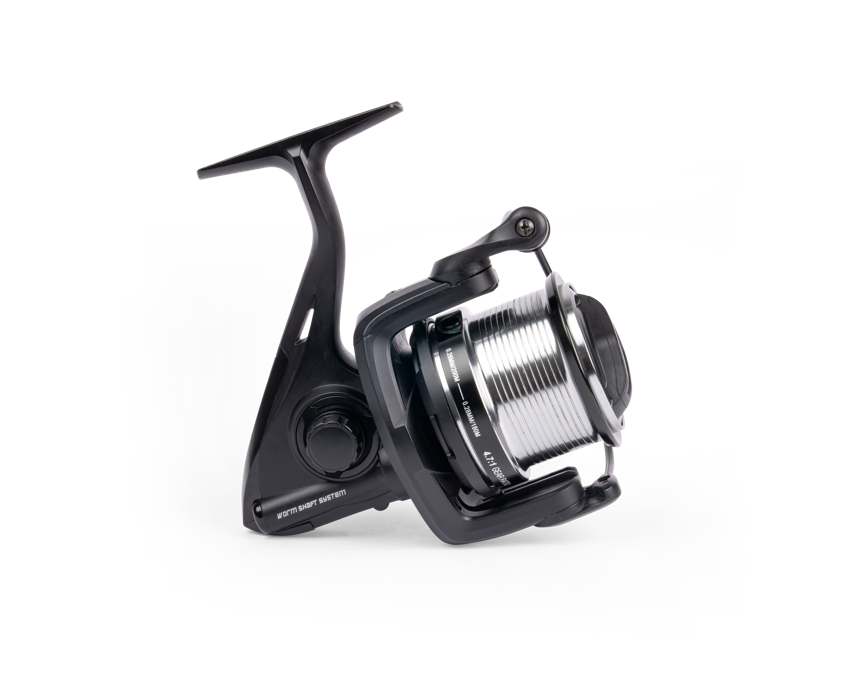 Worm shaft system. 4.7:1 Gear Ratio. 0.26mm/200m. Weight: 390g. Retrieve 90cm per turn.