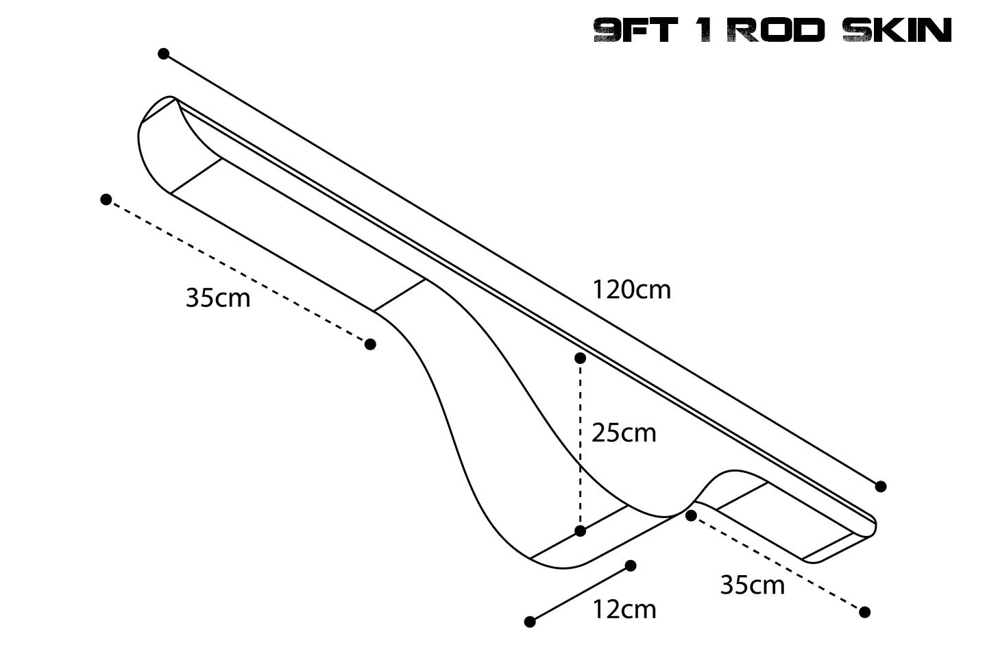 -9 and 10 foot skins accept rods with 50mm ringing and big pit reels