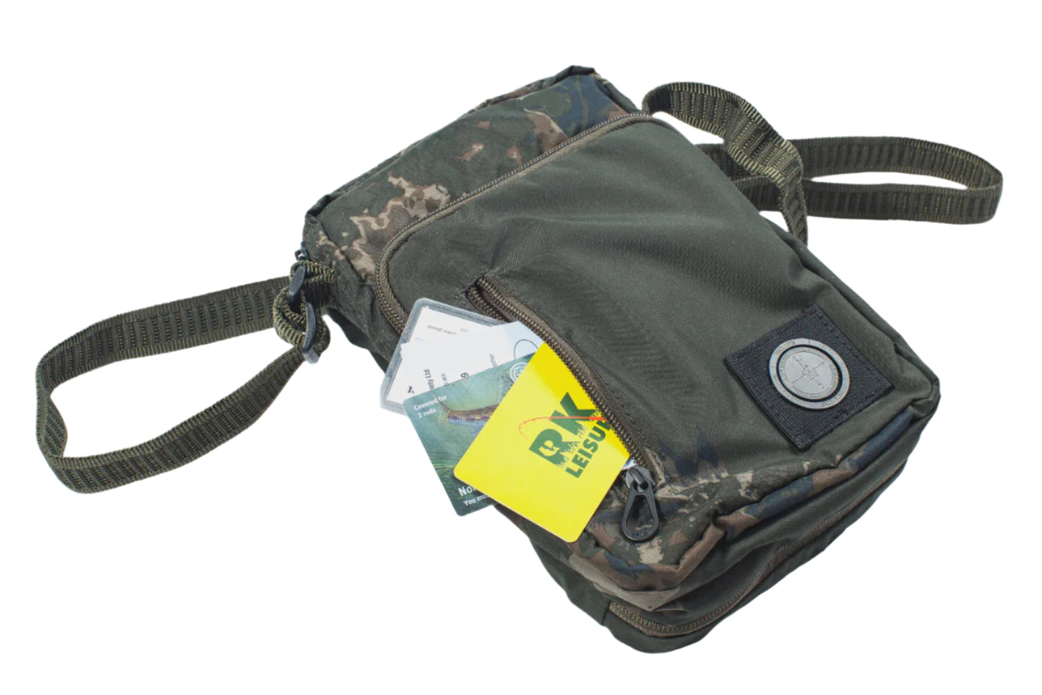 The Security Stash Pack carries over the shoulder with one main compartment and two smaller zipped pockets to keep wallet, keys, phone and Passport safe when travelling - or keeps your valuables together when bankside.