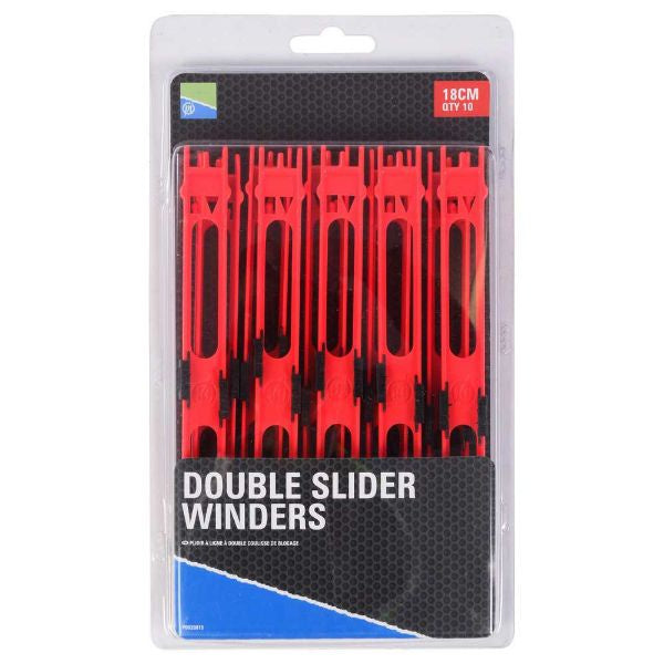 Each Double Winder features two sliders so two rigs can be neatly stored on each winder. There is a slot for your hook and a peg which would hold a loop, meaning that rigs can be tied and hooklengths added at a later date if needed without kinking your line. The sliding anchor can be moved along the full length of the winder. There is a small retaining spike at both ends of the slider so it doesn’t matter which way you wind your rig on. The tapered ‘V’ hook holding slot can accommodate hooks as small as size 26 without damage.