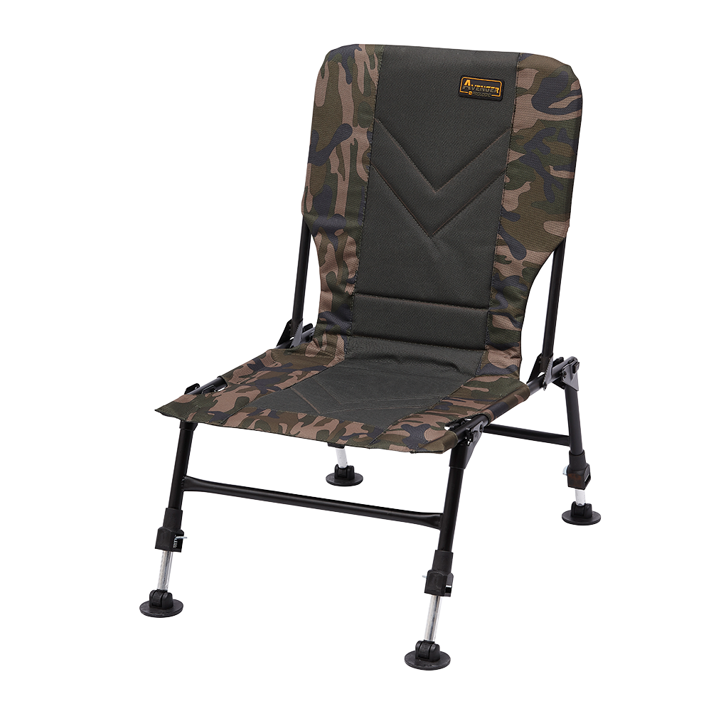 Avenger Chair Range The Avenger chair range offers the very best in functional and stylish solutions for every eventuality. We have combined sumptuously as well generously padded mattress using the subtle Avenger camo with desirable greens. Ultra-strong steel frames using quality fittings, adjustable legs, pivoting mud feet and arm rest with neoprene covers. Ensures the Avenger chairs offer the very best is functionality at realistic value.