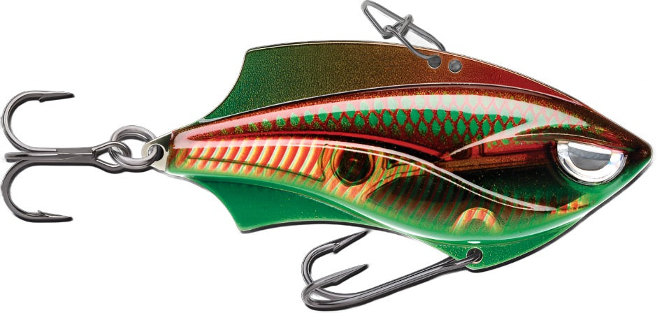 The Rap-V Blade is the perfect balance of metal, plastic and Rapala® expertise. This extremely versatile bait produces instant vibration on the lift or retrieve. The Rap-V can be worked in variable depths with a wide range of techniques; cast out, make contact with bottom, lift & let fall in a yo-yo style retrieve. For vertical presentation, drop to bottom and twitch for a jigging action. Two line tie positions; front line tie for a slower fall swimming action, rear line tie for a faster fall, head down action. The Rap-V Blade delivers the right action and attitude and is a perfect choice for any species of gamefish.