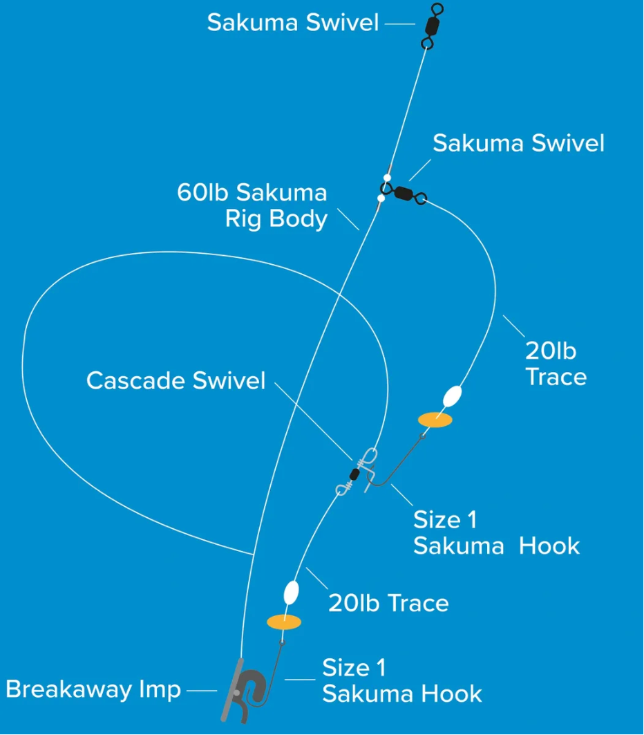 Comprising 70lb Sakuma Rig Body, 20lb Amnesia, and size 1 Sakuma 560 Stinger hooks, this rig is a sea fishing essential.