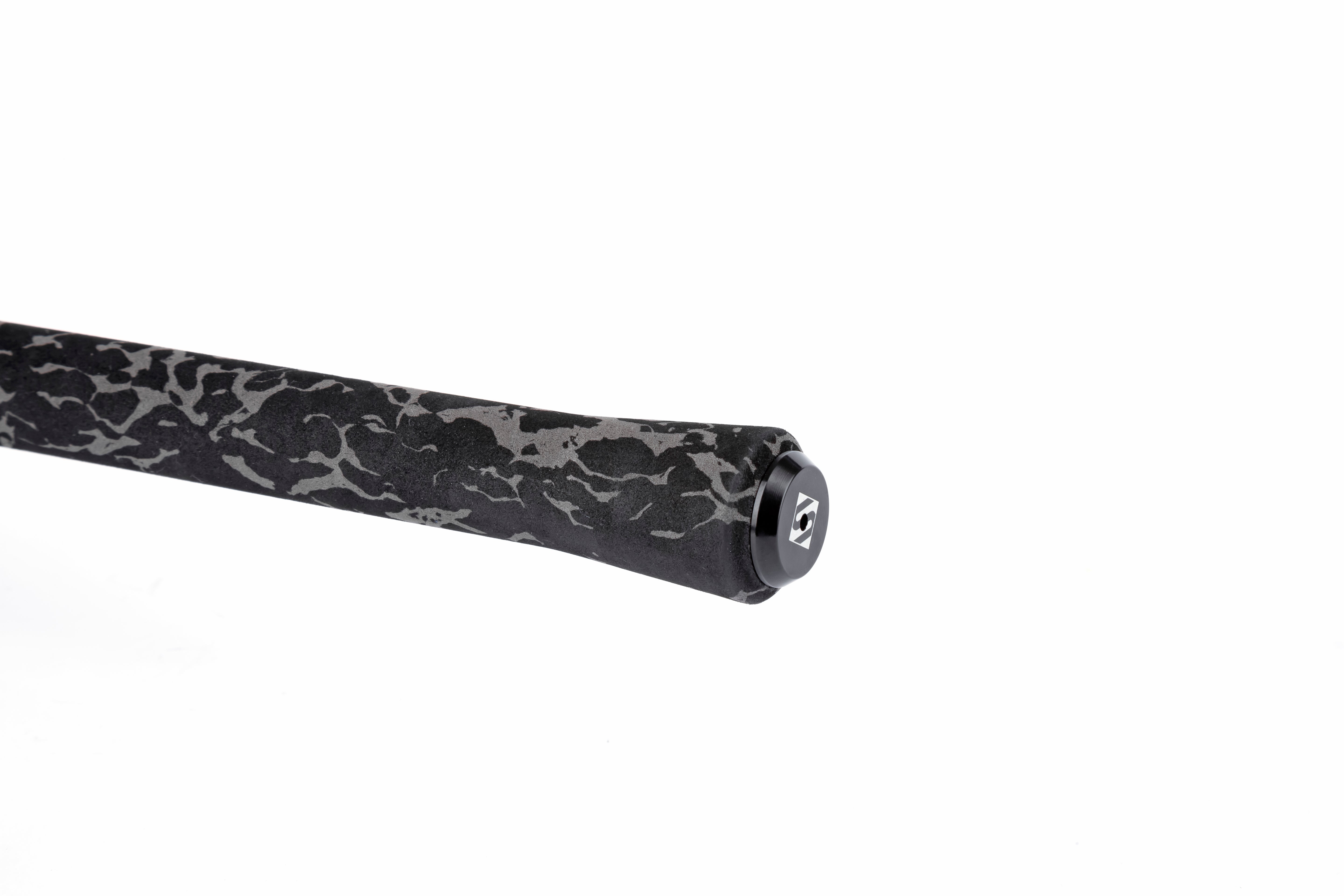 Built on C6 carbon with a cool, eye-catching, slim DARK CAMO EVA handle. Proven and trusted XTRACTOR action, dressed in super-light TDG double leg black guides with ADAMAN coating - the toughest PVD finish on the market, 5X more durable than others. Anti-frap tip guide with zirconium slimline insert for minimum friction when casting.