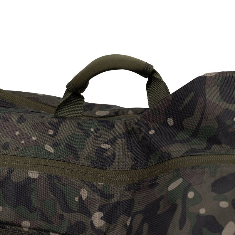 The Trakker NXC 3 Rod Sleeve 12ft has been developed using years of experience in rod luggage. Simple, protective and hard-wearing, we all know rods and reels are some of our most expensive and fragile bits of kit and therefore need the appropriate carp fishing luggage to boot. The heavily padded 3 rod sleeve is tailored to perfection, providing a generous fit for three fully made-up 12ft carp fishing rods. Uncompromising in durability, the twin-direction, heavy-duty main zip ensures quick and easy access to your rods and reels. The widened tip sections, coupled with internal padding, accommodate 50mm K-series guides, ensuring your rods are securely shielded during transport. Each rod is separated with the internal padded sleeve and secured into position with the internal Neoprene rods staps. There is a further strap and elastic loop that can be used for stowing your throwing stick so it too can benefit from the padded protection. The oversized reel pouch section is heavily padded and generously sized to protect the largest big pit reels. Both sides of the NXC 3 Rod Sleeves feature large zipped external pockets sized for retention slings, landing nets, storm poles and other Trakker accessories. On the rear side there’s a large open pocket at the base to hold additional NXC Rod Sleeves, which can be secured using the tension straps on the upper sections. An additional smaller zipped open pocket can accommodate landing net handles or store your distance sticks. Just below the main zip there’s a neatly positioned zipped pocket to store leads after your session. We have you covered when it comes to transporting your rods, the NXC 3 Rod Sleeves feature a comfortable removable fully adjustable shoulder strap, a single Neoprene carry handle perfectly balanced when loaded and two Neoprene grab handles positioned for loading. The handles are positioned to keep your reels upright and out of any danger of damage. For space-saving storage solutions, a D-clip is attached to the top of the sleeve. Hang it up securely, keeping your gear organized and easily accessible.
