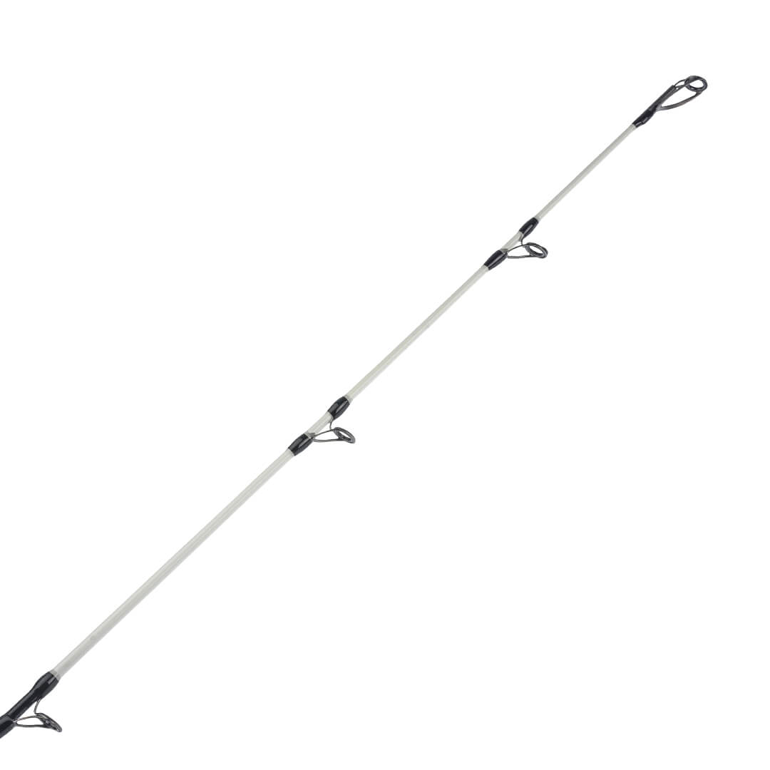 – MATERIALS: Made from lightweight carbon and fitted with KW SiC guides and a DPS reel seat with cushioned hood. Reflective white tip for bite indication at night. Metal collars on butt and mid-section for strength.